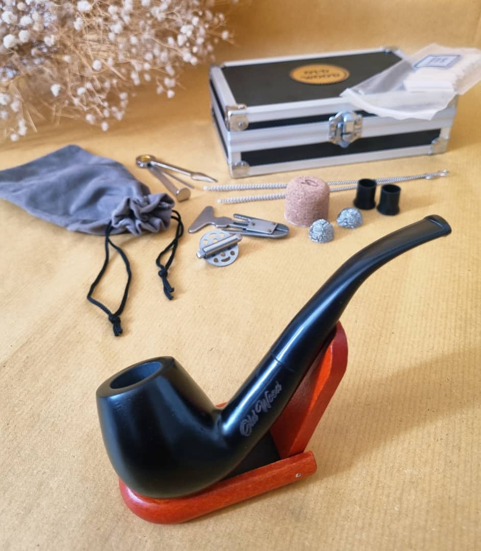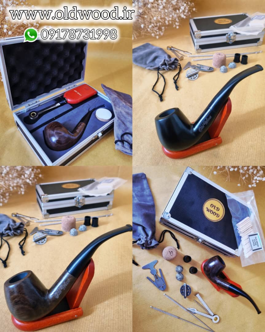 ست پیپ چوبی حرفه ای آبنوس با لوازم و تجهیزات کامل، رنگ مشکی چوب آبنوس جعبه فلزی (آلومینیومی) برند (old wood (pipe blackبا ارسال رایگان/مناسب کادویی،هدیه روز مرد ،هدیه همسر ؛هدیه دادن؛اکسسوری....لاکچری،فوق حرفه ای، اصل